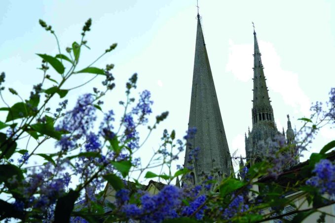 Ici, on tombe sur un petit square au sol pavé, avec des maisons à colombages splendides, où les chats flânent tranquillement sur les rebords de jardinets mignons tout plein. Là, on longe les bords de l’Eure, où l’on peut admirer des dizaines de jolis ponts tout en pierre enjambant la rivière, sans oublier les lavoirs et la collégiale Saint-André, bâtie au XIIe siècle, et aujourd’hui classée Monument Historique. C’est bien simple, cette petite promenade au fil de l’eau donne l’impression de ne pas du tout évoluer dans un environnement urbain, en offrant un sentiment de plénitude absolue. Ailleurs, on s’arrêtera quelques minutes pour observer, sous un arbre, la façade d’une belle demeure d’où sort, à l’extérieur, un escalier tourelle magnifique de style Renaissance, avec des sculptures en bois grandioses, dont certaines prennent l’apparence de crocodiles portant des oreilles de lapins. Cet escalier, c’est celui de la reine Berthe. Mais depuis cette partie basse de la ville, un monument ne cesse cependant d’attirer le regard : la cathédrale Notre-Dame…