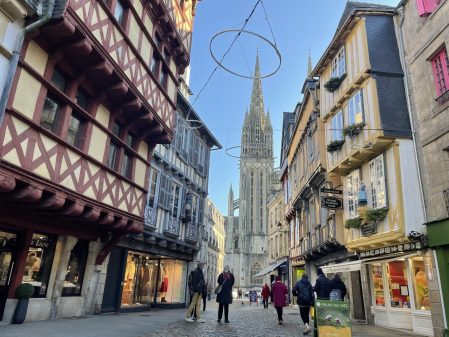 Nous nous rapprochons maintenant de Quimper. Les odeurs alléchantes de la place au beurre nous attirent. Il faut dire que cette rue abrite près d’une dizaine de crêperies ! Le lendemain, la lumière est extraordinaire, la vue sur la cathédrale, la chaleureuse rue commerçante, l’ambiance bretonne donnent terriblement envie de rester. On reviendra…