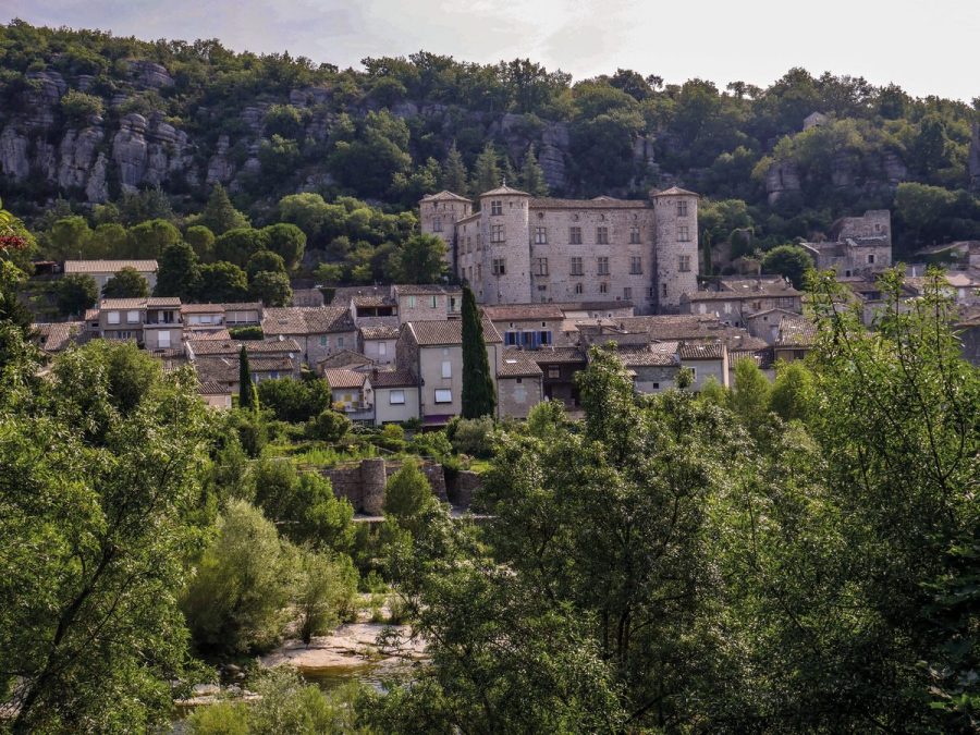 Un peu plus loin, nous découvrons un autre village ardéchois, Lanas, lui aussi très typique de la région. On notera, l’emplacement de son église, presque au bord de l’eau.