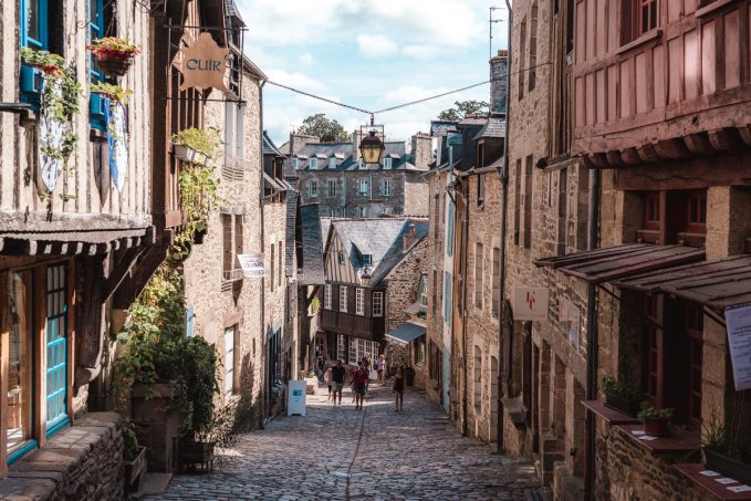 Qu’il fait bon arpenter les ruelles pavées de la cité ducale. Après avoir stationné sur l’aire municipale, qui surplombe le port près du viaduc, on enfile ses chaussures de marche, direction la Rance et le vieux pont millénaire pour remonter la rue pavée du Petit-Pont, l’une des plus fréquentées. Restaurants et échoppes en tous genres y sont légion. Passé sur notre gauche la Maison du Gouverneur, on arrive à la majestueuse porte de Jerzual (XIIIe-XVe siècle), d’où l’on peut accéder aux remparts. Cette porte débouche sur la rue du même nom, celle des artisans qui travaillent devant le passant et, à tout seigneur tout honneur, ne manquent de proposer leur production. Ici des bijoux, là du cuir, plus loin des tableaux, des céramiques, du verre…