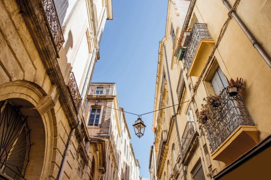 Depuis le parc du Peyrou, l’arc de triomphe est la porte d’entrée vers la vieille ville sauvegardée, vers son centre historique l’Ecusson. Construit en 985, à la naissance de la ville, l’Ecusson constitue aujourd’hui le plus grand secteur piéton de France. Chaque matin, les Montpelliérains viennent faire leur marché aux halles Laissac ou aux halles Castellane, un ancien marché aux fleurs rénové en fonte et en verre. Vous y trouverez de bons produits languedociens, sur les étals aux odeurs et couleurs méditerranéennes !