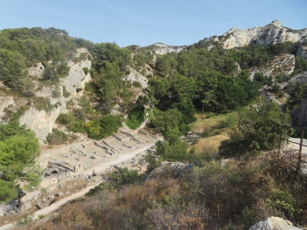 Dans le cadre enchanteur du Parc naturel régional des Alpilles, sous le soleil de la Provence, guidé par le son des cigales, il ne vous faut que quelques minutes pour se rendre sur place. Le site est annoncé par les Antiques : un mausolée et un arc de triomphe à la gloire de la riche famille des Julii, deux générations de militaires servant sous Jules César. Quatre belvédères permettent d’apprécier l’ampleur des lieux qui s’étendaient jadis sur une vingtaine d’hectares, au pied protecteur du mont Gaussier, avec le dessin géométrique des rues.