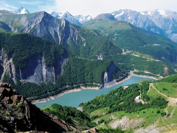 Poursuivant vers l’ouest, voici le légendaire Pas de la Confession et le balcon pittoresque de Villard-­Reculas. Depuis le XVe siècle, l’ingénieux canal Sarrasin achemine l’eau sur 13 km, du lac Blanc au bassin du Langaret, pour irriguer les cultures. C’est alors la bascule dans la vallée de l’Eau d’Olle. Un autre univers égayé par les stations plus intimistes d’Oz (créée en 1988) et de Vaujany, ainsi que par les vastes barrages turquoise du Verney et de Grand’Maison (surface du réservoir : 219 ha) menant aux prestigieux cols du Glandon et de la Croix-de-Fer. Ici, des combes et des défilés, nichés entre la chaîne de Belledonne et le massif des Grandes Rousses.