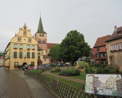 Un aller-retour permet de musarder dans les ruelles au pied du château de Kaysersberg. De retour à Kintzheim, la route se cabre pour grimper dans les coteaux viticoles et atteindre la célèbre et attachante cité de Riquewihr et ses superbes demeures anciennes multicolores.