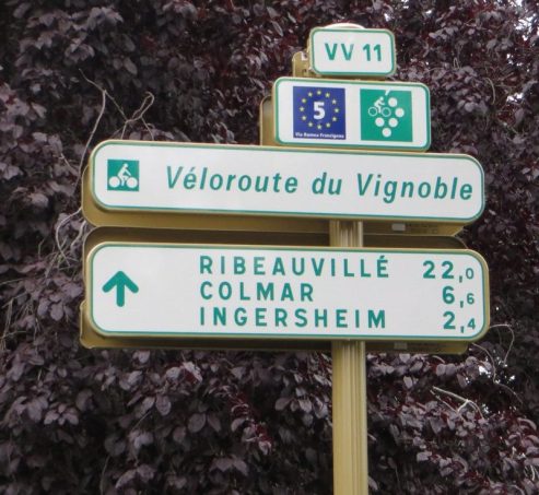Colombages et canaux romantiques caractérisent Colmar, la “Petite Venise” située entre Mulhouse et Strasbourg. Musées et architecture historique de tous styles méritent une étape prolongée. En partant vers l’ouest et à l’approche de Wintzenheim, vous évoluez au milieu des vignes, tandis que des vestiges de châteaux sont campés sur les sommets forestiers. A partir d’ici, on suit fidèlement le balisage de l’EuroVelo 5 (qui relie Canterbury à Rome sur 3 200 km) ou Véloroute des Vignobles.
