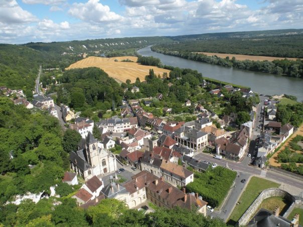 Un peu plus loin, nous arrivons à La Roche-Guyon, dominée par son imposant donjon accroché à la roche. C’est la seule commune d’Ile-de-France labellisée “Plus Beaux Villages de France” – et ce classement n’est pas volé : les rues sont coquettes, le patrimoine important, entre château, maisons anciennes, vergers et potagers historiques. La pause pique-nique arrive à point nommé pour apprécier la beauté de l’endroit et le charme de cette petite commune à la forte identité.