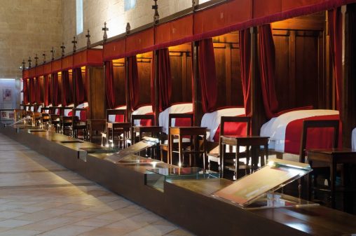 A l’intérieur des Hospices, tout est bien agencé. Sobre et luxueux à la fois, l’environnement, en plus d’être fonctionnel, était même en avance sur son temps. Chouchoutés par les sœurs, les malades n’avaient pas envie de repartir, une fois remis sur pied. La première salle de soins, dédiée aux pauvres, le montre parfaitement. Grande et majestueuse, on pourrait la comparer à l’intérieur d’une église.