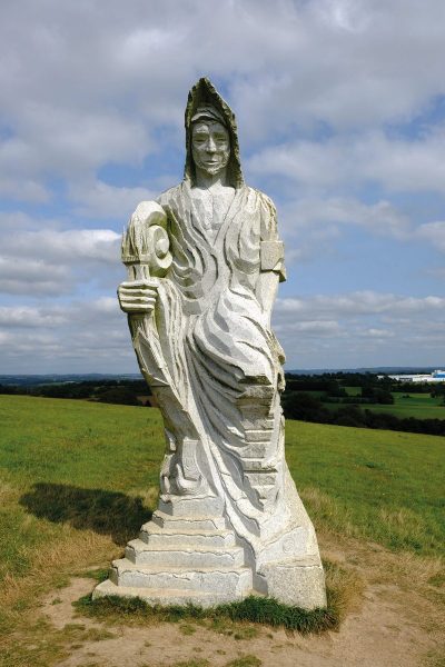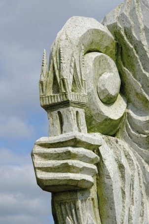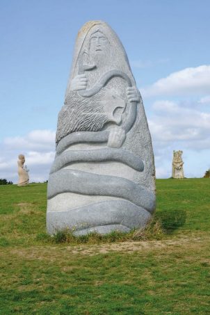 Comme la statue de sainte Onenn veillant sur quelques oies. Les gallinacées l’avaient sauvé de mercenaires qui en voulaient à sa vertu. Ou Ewen, statue sur laquelle sont représentés un serpent et un lion en raison d’un combat auquel le saint avait assisté, alors qu’il errait en pleine forêt. Ewen tua le serpent, et le lion, reconnaissant, restera à ses côtés pour le servir. Saint Jacut, connu pour ses guérisons miraculeuses et invoqué contre les épidémies, la folie, les inondations et la sécheresse, a été représenté en livre, source du savoir, par le sculpteur Kito. Ou saint Emilion et sa grappe de raisin, saint Brieuc et saint Malo, tous deux tournés vers leur ville d’origine. Mais impossible de toutes les passer en revue, tant elles sont nombreuses. Cette diversité fait de cette colline un lieu magique, passionnant et unique. A voir, vraiment !