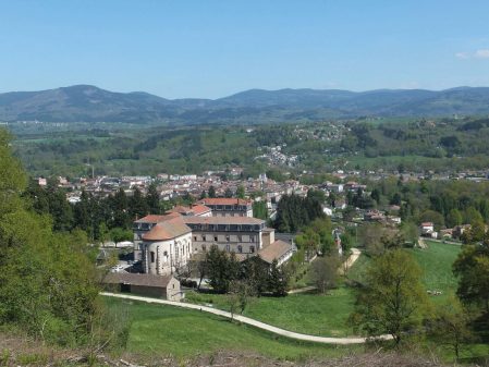 Situé à moins de 20 km au sud de Thiers, 44 km à l’est de Clermont-Ferrand et 100 km au nord-ouest de Saint-Etienne, la région se trouve au cœur du vaste Parc naturel régional du Livradois-Forez. Les collines où vous évoluez ont des allures de Toscane, avec des vallonnements campagnards, des sanctuaires, un peu de vignes. Après la descente vers Courpière, vous vous élevez vers Sermentizon. En contrebas, le superbe château d’Aulteribe du XIIIe siècle, enjolivé à l’époque romantique (XIXe siècle). Annoncé par un décor boisé et un jardin dessiné par Le Nôtre, apparaît ensuite le château de Ravel (XIIe-XVIIIe siècles), où a été tourné le film Les Choristes de Christophe Barratier, en 2003 (un incendie ravage 400 m2, en 2016). En progressant vers la belle église romane de Glaine et la butte de Montaigut, s’étire à l’horizon la chaîne des volcans d’Auvergne, dominée par la silhouette typique du puy de Dôme (1 465 m). Proche de la plaine de Limagne, la cité historique de Billom mérite une halte pour ses ruelles pavées, sa collégiale gothique, ses demeures à colombages.