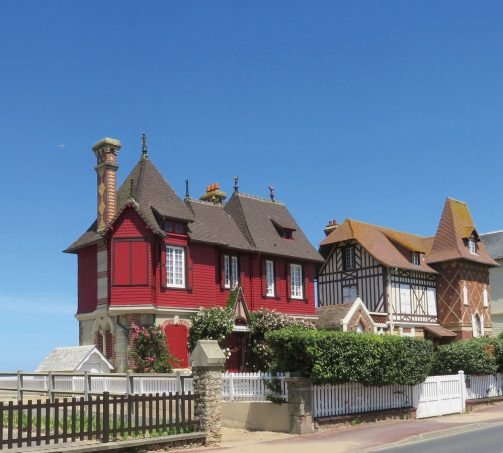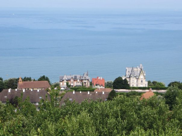 On atteint ainsi Deauville. Cette station balnéaire s’est développée à partir de 1860 pour séduire les vedettes parisiennes, avec une gare ferroviaire, un port, des palaces, un casino, un hippodrome, des demeures d’exceptions (telle la villa Strasburger), ses célèbres Planches et cabines de bain portant des noms de stars du cinéma. Seulement séparée par la Touques, sa voisine Trouville ne manque pas de charme avec son architecture balnéaire éclectique (comme la villa Montebello) et, ici encore, le souvenir bien présent de Marcel Proust.