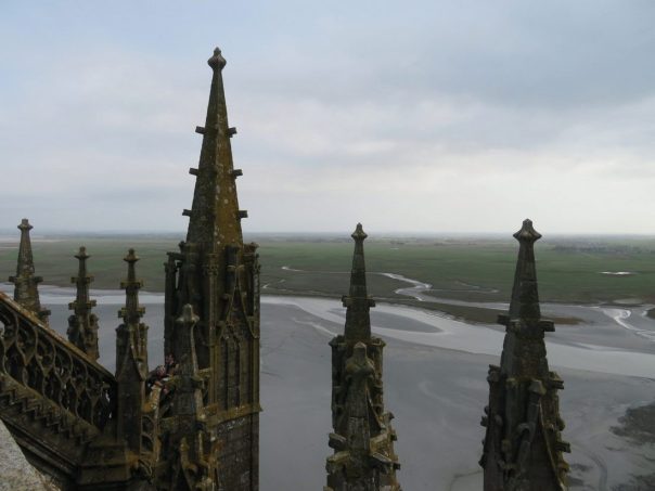 Avec son glaive, saint Michel, appelé l’archange, terrassant le dragon, scintille d’or au soleil au sommet de la flèche de l’abbaye bénédictine, à plus de 150 m de haut. Prouesse d’équilibre sur ce rocher perdu au milieu d’une immense baie, ce chef-d’œuvre architectural a été édifié en plusieurs étapes à l’emplacement d’un premier sanctuaire fondé en 708. C’est surtout à partir du Moyen Age, que s’élèvent les prestigieux bâtiments religieux avec le cloître, l’église, le réfectoire baigné de lumière. Les tours et solides remparts ont été érigés jusqu’au XVe siècle et ont résisté vaillamment aux assauts des Anglais pendant la guerre de Cent ans.