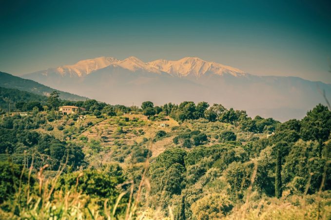 Nous sommes au pied du Canigou. Le maître des lieux, qui domine tout l’est des Pyrénées du haut de ses 2 747 m, offre à nos regards sa silhouette élancée. A ses côtés, sa voisine l’arête Quazemi a également fière allure. Aujourd’hui, nous ne partirons pas à l’assaut de ces cimes. Au contraire, c’est la verte vallée qui s’étend autour du village de Vernet-les-Bains, une agréable station thermale d’où nous nous élançons et que nous allons explorer sur cette randonnée relativement facile. Nous débutons cependant – après un prélude sympathique sur la promenade thermale au bord de la rivière le Cady – par une bonne montée, qui nous conduit, dans un décor plutôt verdoyant, à une jolie chapelle romane ruinée, Saint-Clément de la Serra. Le lieu respire la sérénité.