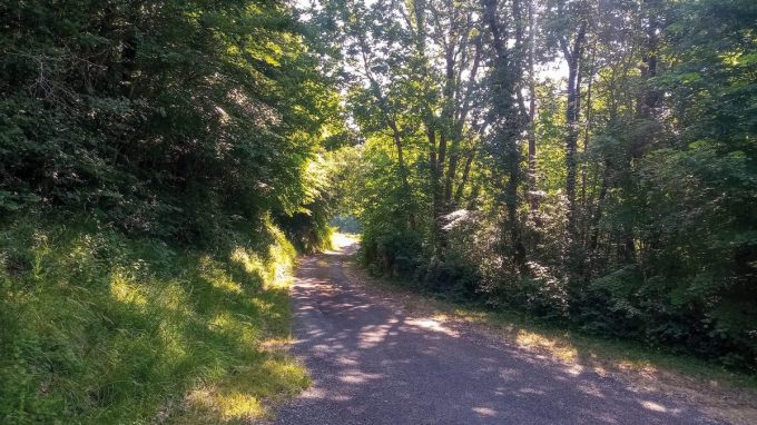 Cela se ressent dans les peintures qui sont présentées au fil de cette balade et nous sommes bien d’accord : nous ne pouvions rien trouver de mieux pour marcher au calme que cette balade entre bois et champs, village et hameaux. A peine si nos pensées contemplatives sont troublées par quelques voitures qui passent, nous sommes tout à la découverte de ce petit coin de campagne. C’est vrai, la promenade est assez courte et vraiment facile : mais on marche ici à moitié comme dans une balade et à moitié comme pour une visite de musée. Chaque panneau, où une œuvre du peintre évoquant presque directement le lieu où l’on met les pieds, invite à s’arrêter. Pour mieux entrer dans l’inspiration de l’artiste, pour comparer les époques, mais surtout pour encore mieux s’imprégner du paysage et de son atmosphère, à la fois par la nature elle-même qu’on a devant les yeux, mais aussi par son interprétation d’autrefois, sous le pinceau de l’artiste disparu mais pourtant si présent.
