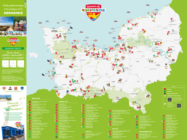 Le réseau Saveurs de Normandie regroupe aujourd'hui plus de 130 entreprises et producteurs engagés pour environ 600 produits labellisés. Depuis 20 ans, la marque promeut le savoir-faire et les produits de son territoire. Pour anniversaire spécial, Saveurs de Normandie a publié une carte regroupant plus de 60 boutiques de producteurs et points de vente directe. Elle est en libre accès et peut être téléchargée directement sur leur site.