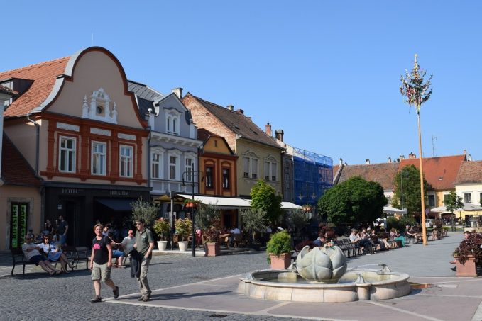 Après avoir parcouru un bon millier de kilomètres sur les autoroutes allemandes et autrichiennes, nous bifurquons au sud de Vienne, direction la Hongrie. Nous arrivons à Kozeg, sympathique petite bourgade dont les maisons colorées ornent Jurastics Tér (Tér signifie “place” en hongrois). En période de fortes chaleurs, les fontaines sont prises d’assaut par les enfants qui s’y plongent pour se rafraîchir. Touristes et habitants se désaltèrent d’une bière blonde en terrasse. Héritage de l’empire austro-hongrois, la boisson à base de houblon est très prisée. Plus loin, la Fö Tér (place centrale) est dominée par les flèches de l’église du Sacré-Cœur et son clocher à oignon. On peut y admirer de belles façades au crépi en trompe-l’œil ou de sgraffites, technique qui permet de faire apparaître des motifs en grattant la couche supérieure de l’enduit.