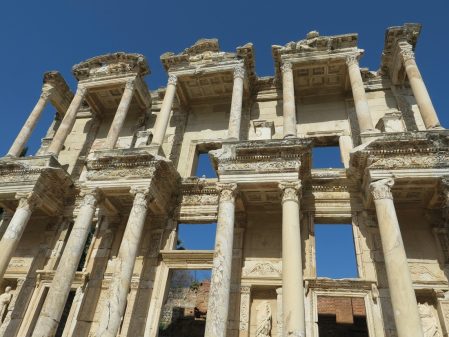 Notre périple débute sur une vaste plage. Le sable est si dense qu’il est possible d’y rouler avec le camping-car. Incroyable ! Pendant que l’on admire le coucher du soleil, des vaches et des chiens errants circulent autour de notre véhicule. On est tout de suite dans l’ambiance ! Nous sommes à 10 mn de la cité antique d’Ephèse. Le bivouac est idéal avec l’assurance d’arriver de bonne heure sur le plus célèbre site archéologique de Turquie. Classée au Patrimoine mondial de l’Unesco, Ephèse est également considérée comme étant la quatrième merveille du monde antique ! Mieux vaut donc y arriver dès l’ouverture pour échapper à la cohorte des touristes, mais aussi à la chaleur qui y règne souvent. Dans ces conditions, on peut alors profiter de la beauté de l’amphithéâtre et de la grandiose bibliothèque de Celsius. De bon matin, seuls les chats vous tiendront compagnie.