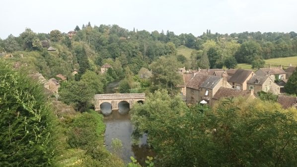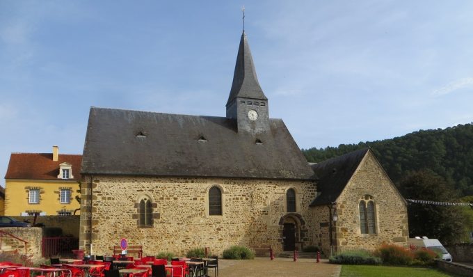 Vous atteignez les bâtisses typiques en grès roussard de Saint-Céneri-le-Gérei, classé parmi les Plus Beaux Villages de France, dont l’église renferme de précieuses peintures médiévales. Perché au-dessus de la rivière, ce superbe site attire de nombreux artistes depuis le XIXe siècle.