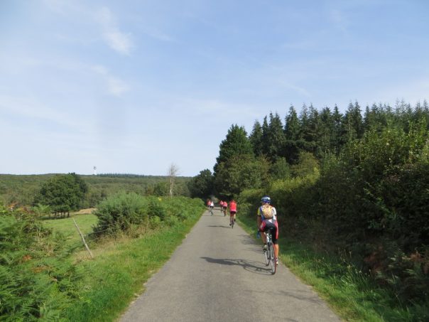 Au détour d’un méandre, au pied de falaises et de collines pittoresques, apparaît la petite Cité de caractère de Saint-Léonard-des-Bois, installée autour d’un ancien ermitage du VIe siècle. Par la suite, l’exploitation des forges et des ardoisières ont contribué à son essor. Des escarpements champêtres agrémentent les environs mayennais de Saint-Pierre-des-Nids. C’est à la sortie de Boulay-les-Ifs que s’amorce la principale difficulté de la balade (4 km à 4,9 % de moyenne et un secteur à 11 %) s’élevant progressivement dans la magnifique forêt de Multonne (825 ha). Le mont des Avaloirs (416,23 m) constitue le point culminant du Massif armoricain et de tout l’ouest de la France. Une tour de 17 m (108 marches) offre un panorama très étendu. Landes et couverts boisés vous accompagnent vers la chapelle et le verger bucolique de Sainte-Anne, avant un profil descendant vers Champfrémont et Saint-Pierre-des-Nids.