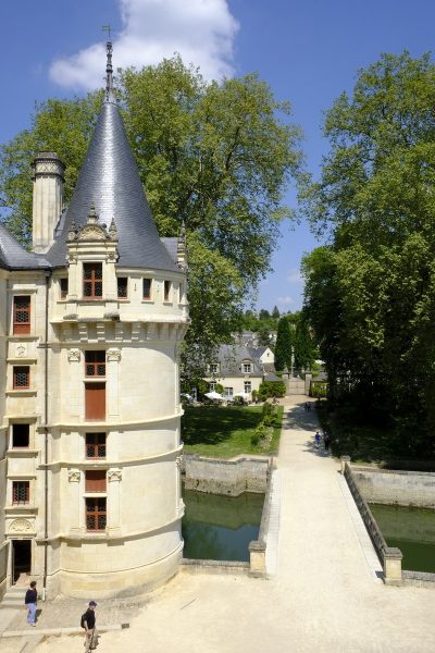 Car Azay a ce petit quelque chose en plus, cette âme qui fait mouche à chaque fois, dans le cœur et dans les yeux. Il suffit d’ailleurs de faire quelques mètres dans le parc pour se retrouver devant la façade sud et comprendre pourquoi le charme opère… à chaque fois. En plus de se refléter dans les eaux paisibles qui l’entourent, Azay laisse admirer ses formes, toutes parfaites et identiques, comme ses tourelles, dans une mélodie de symétrie et d’équilibre, où les lucarnes se répondent, où la verticalité et l’horizontalité sont érigées au rang d’œuvre d’art.