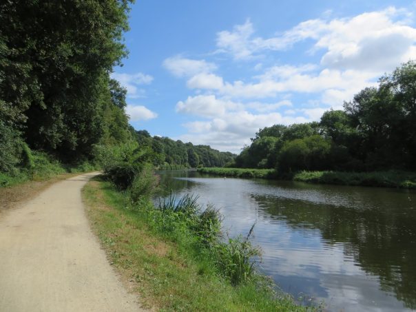 Vous suivez le halage du canal d’Ille-et-Rance, construit en 1832 pour relier Rennes à Saint-Malo (84 km) et ponctué d’écluses typiques. Juste avant Evran, vous rejoignez le sentier du lac de Bétineuc (20 ha) avec sa plage, sa base de loisirs et les vestiges de l’ancienne église romane.