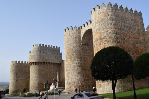 Avant d’accéder à la ville fortifiée d’Avila, nous devons stationner hors des remparts, sur le petit parking situé à 1,5 km du centre (lat. 40.658346/long -4.710634). On y pénètre par une des neuf portes. Eminemment religieuse, couvents (qui ne se visitent pas) et églises se succèdent au rythme de rues pavées qui montent vers la cathédrale – le chevet fait partie intégrante des remparts. Nous avons apprécié la promenade sur Las Murallas qui entourent Avila. Difficile d’imaginer que ce mur d’enceinte fut construit au XIe siècle, héritage des Romains et des Arabes. Le départ de la balade se fait de la puerta del Alcazar ou de celle de San Vicente.