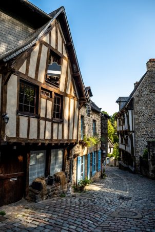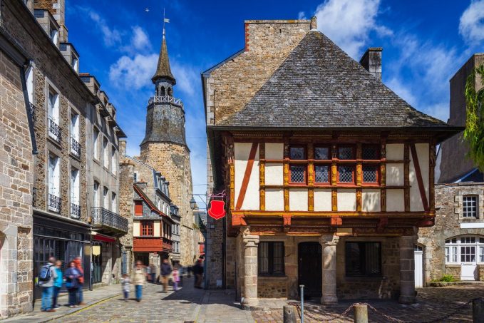 C’est à ne plus savoir où donner de la tête. En remontant la Rance, Dinan. Cité qui a traversé les époques avec une facilité déconcertante, s’embellissant au fil des années tout en gardant le charme d’un village médiéval, avec ses pierres apparentes, ses maisons à colombages et ses ruelles pavées. La rue du Jerzual en est l’un des plus beaux exemples. Si personne ne sait réellement ce que ce nom signifie ou désigne, elle regroupe tout ce qui fait le sel de cette ville : des demeures magnifiques, un témoignage historique, à l’image des volets plats de certaines maisons, qui permettaient d’exposer les marchandises aux yeux de tous, la rue étant autrefois la principale artère commerçante de la ville ; et un attrait culturel indéniable avec la présence, aujourd’hui, de nombreux artistes.
