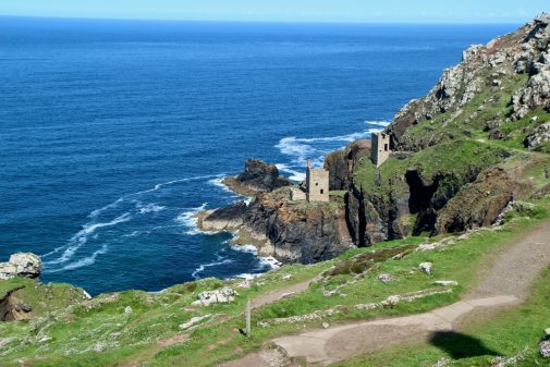 Au sud d’Helston – où on découvre Blue Anchor, l’un des plus vieux pubs du Royaume-Uni –, l’attraction se concentre sur le cap Lizard, la pointe de l’Angleterre, et son phare légendaire. Un promontoire redouté et bien connu des navigateurs. A Lizard, on trouvera sans souci une place pour stationner gratuitement. Les restaurants sont nombreux, mais point d’épicerie : mieux vaut prévoir des vivres à Helston pour le pique-nique. C’est le fief de la randonnée côtière ! Le sentier est à couper le souffle. Il est plutôt bien entretenu entre les blocs de granite affleurant, les ajoncs, les genêts et les bruyères en fond de vallon. Les nombreux troupeaux de moutons évoquent une atmosphère quasi-irlandaise. Juste avant le cap, laissons-nous flâner à Kynance Cove (stationnement à l’entrée du site). En contrebas, on accède à un minuscule port et une crique de sable blanc.