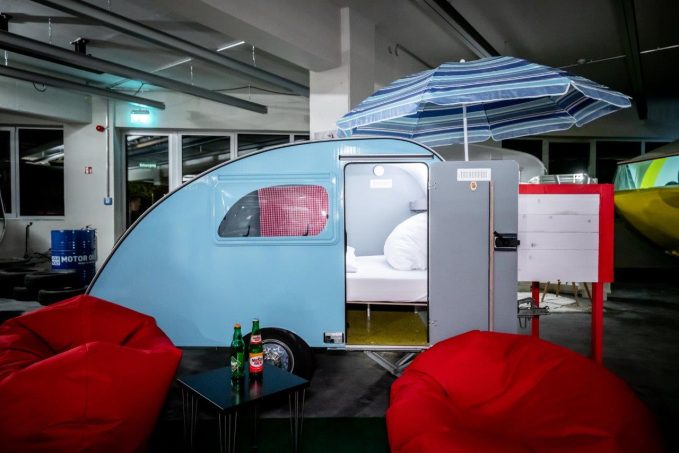 Depuis octobre 2021 le centre de la cité touristique de Triberg, la capitale du coucou, abrite un concept de camping étonnant où l’on ne dort pas à l’extérieur, mais à l’intérieur ! Comme le raconte avec passion Laura Heim, conceptrice du projet :« Le bâtiment était vide et disponible. La question s'est posée de savoir s'il était possible de l'utiliser à des fins touristiques. Je voulais faire un hôtel, car dans la commune il n' y a pas beaucoup d’espace pour créer un grand camping. Au rez de chaussée, on trouve une quinzaine de caravanes qui peuvent accueillir jusqu'à 42 personnes. À l'étage, des cabanes et des tentes Safari recoivent jusqu'à 30 personnes. Ambiance rétro avec une grande majorité d’anciens modèles de caravanes comme les Camper 1 et Camper 2 qui datent des années 70, ou l’Hymer Eriba.