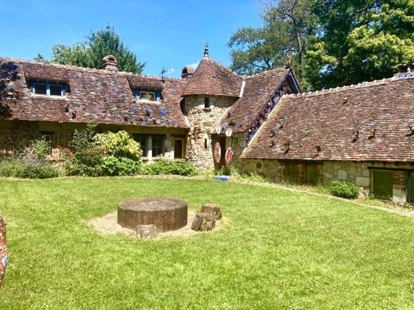 ’est le ciel qui en est le toit”. Voilà pourquoi, d’après Jean Linard, sa Cathédrale est la plus haute du monde. Imparable ! Fantasque, étonnant, pluridisciplinaire, ce natif de la Nièvre (1931) et ancien de l’école Estienne, à Paris, s‘intéresse très tôt à la poterie, fréquentant les artisans de La Borne, dans le Cher, haut-lieu de la discipline. Après avoir été un temps graveur sur cylindre pour l’imprimerie, il s’y installe en 1959 en tant que potier avec la céramiste Anne Kjærsgaard, sa deuxième épouse. Deux ans plus tard, ils deviennent propriétaires d’une ancienne carrière de silex à Neuvy-Deux-Clochers, à moins de 15 km de Sancerre, où ils construisent une maison sur le modèle des fermes danoises, pays d’origine d’Anne, avec des poutres, des tuiles, des menuiseries… de récupération.