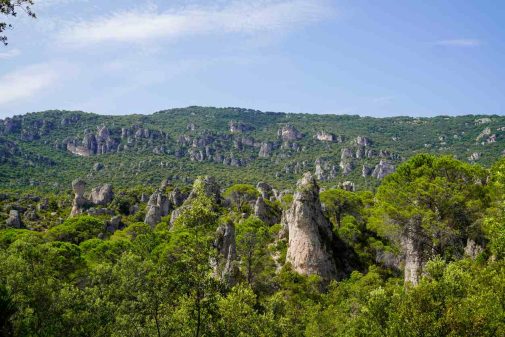 Plus globalement, les paysages du Grand Site Salagou-Cirque de Mourèze se caractérisent par une grande variété de formes et de couleurs. Le rouge, qui se décline en plusieurs tons, est due au tuf rouge raviné. Ces lieux sont aussi le témoignage du patrimoine languedocien avec des villages typiques, mais aussi d’une biodiversité riche.