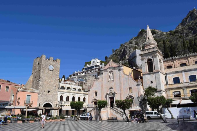 Débarquer à Messine, c’est changer de monde. En termes de règlementation d’abord, notamment le code de la route. Manifestement, la priorité à droite semble méconnue et les panneaux “Stop” sont souvent “glissés” ; les Vespa doublent par la droite et les conducteurs locaux ont tendance à confondre “se garer” avec “poser son véhicule”. A ce premier constat quelque peu inquiétant, nous ajouterons l’état des chaussées un tantinet défectueux et les nombreuses “déviations” liées à d’improbables travaux. Quant à l’étroitesse des rues dans certains villages, on n’est pas trop de deux pour circuler sereinement et arriver à Taormine, première étape de notre séjour.