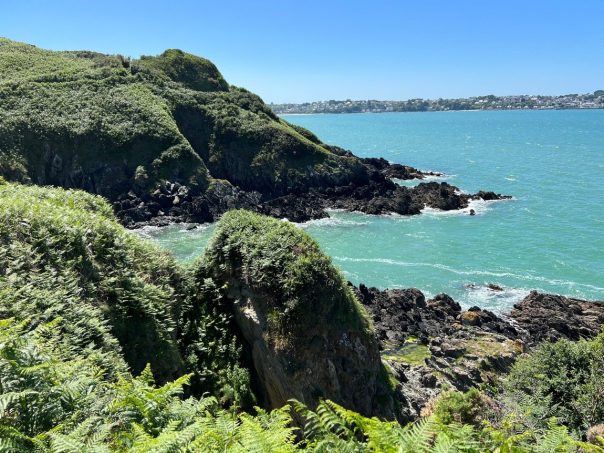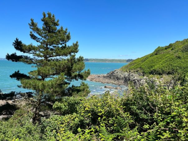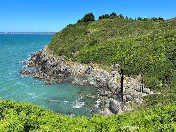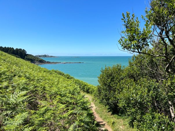 Une petite bande de terre qui serpente à travers les fougères, le ressac des vagues comme musique naturelle, des petites montées, des descentes plus ou moins douces, une mer d’un bleue émeraude d’une beauté sans nom et un sublime passage dans les terres, apaisant à souhait, sous un tunnel d’amour de branches d’arbres : la randonnée faisant le tour de la presqu’île de Kercoz mérite sa réputation de petite merveille.