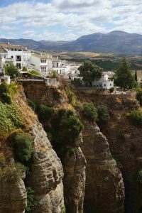 Pour nous remettre de nos émotions, direction la commune de Ronda. Durant cette petite heure de route, l’Andalousie déballe ce qu’elle a de plus beau : des montagnes, des champs d’olivier, des collines dodues, des petits villages isolés… On stationne sur l’aire autocaravanas à l’entrée de la ville. A partir de là, l’accès au centre se fait aisément à pied ou en transports en commun.