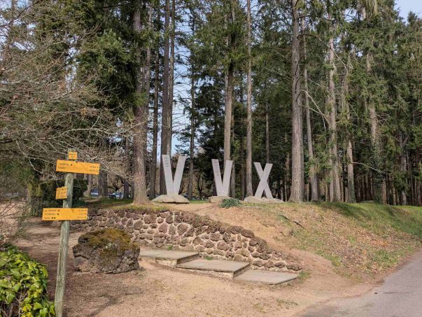 - On part du parking des Sources de Volvic. Le départ (panneau) se trouve à la sortie du parking à droite.