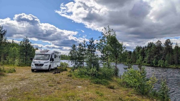 En poursuivant notre route vers le Nord-Est, nous quittons la région des lacs. Toutefois, les étendues d’eau sont toujours aussi nombreuses. Nous croisons quantité d’arrêts pour les pauses café accompagnées de korvapuusti (brioche épaisse roulée à la cannelle, ornée de cristaux de sucre), le déjeuner ou le bivouac nocturne. Toutes les étapes nous surprennent toujours autant. Elles sont superbement aménagées, comprenant presque toutes un foyer couvert, du bois en libre-service dans un hangar, un abri avec tables et cheminée, des toilettes… Il ne faut pas hésiter pas à sortir les cannes à pêche ; avec un peu de patience on finit toujours par capturer un brochet ou un autre poisson.