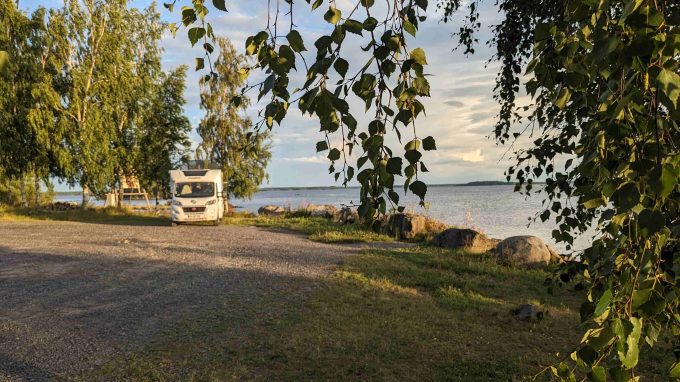 Un bref détour s’impose ensuite pour découvrir l’archipel de Kvarken, classé au patrimoine mondial de l’UNESCO. Cette mosaïque d’îles basses est un incroyable puzzle de paysages. Nous sommes ici au point le plus occidentale de la Finlande. Le stationnement (10€ la nuit) n’est pas terrible, mais le port de Svedjehamn est très photogénique, surtout sous les chaudes lumières du soleil couchant.