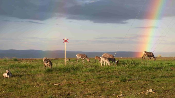 Une centaine de kilomètres au Nord, nous traversons le parc national d’Hossa où l’on contemple nos premiers rennes. Pour nous dégourdir les jambes, nous empruntons le sentier-nature balisé « pomme de pin » (3km) où l’on a pu observer une famille de rennes grignotant les lichens, des lacs de différentes couleurs, quelques panneaux explicatifs et un Visitor Center.
