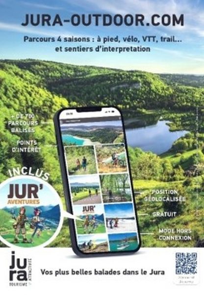 Développée par Jura Tourisme & Attractivité et le Conseil départemental du Jura en coopération avec le Parc naturel régional du Haut-Jura et l’Espace Nordique Jurassien et en perpétuelle évolution, Jura Outdoor apporte de précieuses fonctionnalités comme la géolocalisation, la mise en avant des points d’intérêt le long des itinéraires, le téléchargement de traces GPX, un mode hors connexion… Bref, un outil indispensable pour profiter pleinement des nombreuses activités de nature que propose le Jura. Vous pouvez obtenir toutes les informations via l'application (Apple Store ou Play Store) ou sur le site Internet dédié.