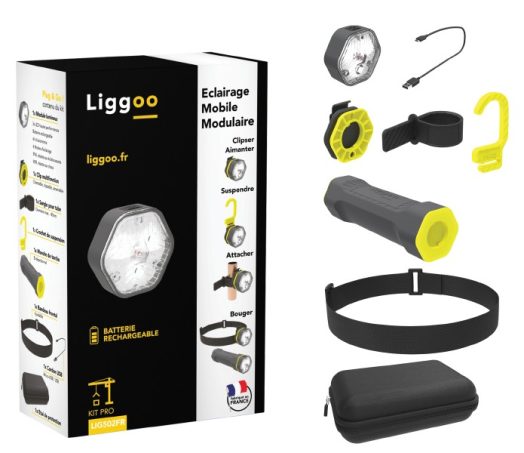 Liggoo est une petite lampe à leds qui peut vous accompagner dans toutes vos activités grâce à différents kits d’accessoires.