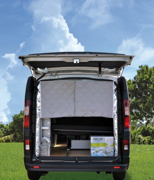 Les rideaux Thermicamp Door se présentent comme des protections thermiques efficaces pour protéger la partie arrière d’un fourgon aménagé comme la toile souple d’un modèle équipé d’un toit relevable.