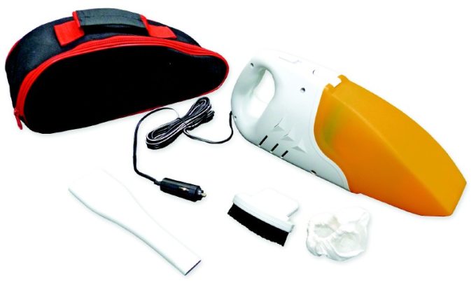 Aussi pratique, mais plus efficace à l’usage qu’une balayette et sa pelle ramasse poussière, ce petit aspirateur fonctionne en 12 volts alimenté par la prise allume-cigares du véhicule. Facile à ranger, il est livré dans une housse de transport avec deux becs d’aspiration de tailles différentes et un sac en tissu. Il manque juste un support mural pour parfaire son usage.