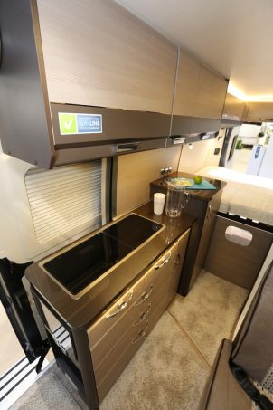 Là où les véhicules conventionnels prévoient des rangements en pavillon pour les assiettes et verres, Hobby a opté pour un nouveau réfrigérateur horizontal à compression Dometic, parfaitement intégré dans le décor du mobilier, et accessible par trois ouvrants. Sa capacité revendique un volume brut de 90 litres avec notamment un compartiment central dédié aux bouteilles. Ce dernier coulisse sur un rail pour en faciliter l'accès. Pour l'heure, cette petite révolution n'est disponible que sur la gamme des fourgons Vantana de la marque allemande. Et ce de série...