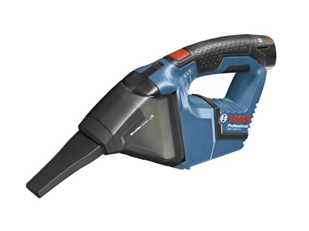 Le dernier modèle de chez Bosch se montre à la fois compact (27,3 cm de long pour 17 cm de haut) et léger (870 g). Le GAS 10,8 V LI Professional possède en plus une puissante d'aspiration étonnante et une excellente autonomie grâce à une batterie amovible au lithium-ion de 10,8 volts (1,5 Ah). Cet aspirateur, sans sac, est équipé d'une cuve de récupération de 0,35 l. Il est livré avec un bec à rallonge, un chargeur et deux batteries. Celles-ci peuvent alimenter au besoin d’autres produits sans fil de la marque (lampe, visseuse, perceuse).