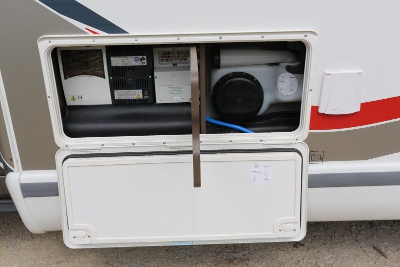 Il s’agit là d’un compartiment technique ''tout en un'', qui regroupe à la fois les éléments électriques (tableau de contrôle, boîte à fusibles, chargeur de batterie) et la partie alimentation en eau. Pour des raisons pratiques, puisque le réservoir d'eau est fixé sous la banquette, la Technibox a été installée côté conducteur, sur le flanc gauche de la cellule.