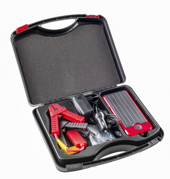 Ce petit boîtier contient des composants électroniques et une puissante batterie au Lithium-ion. Il peut ainsi fonctionner comme un booster, en fournissant une forte impulsion électrique nécessaire à une batterie à plat pour redémarrer un véhicule, mais peut tout autant servir d'accus de secours pour un téléphone ou une tablette déchargée (2 sorties USB de 5 V/2,1 A). Et en cas de panne électrique, sa lampe torche intégrée (à leds) rendra également bien des services.