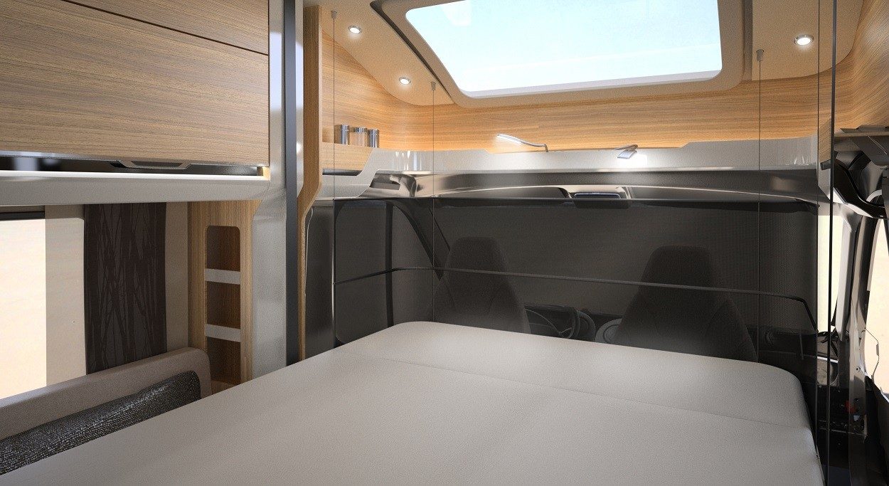 Ce choix d’aménagement innovant permet de ne pas toucher aux rangements hauts du salon afin d’en préserver les volumes utiles. Il autorise aussi, es placards n'étant plus accrochés sous le lit escamotable, une amplitude de descente du couchage plus importante. Ainsi, dans cet Ixeo 2016, le lit de pavillon pourra rejoindre le niveau des banquettes du salon, aucune échelle n’étant nécessaire pour y accéder.