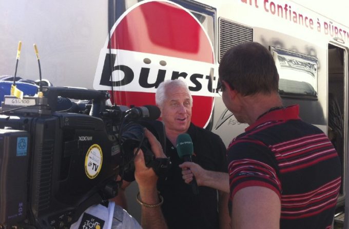 Devenu consultant pour la chaîne Eurosport, Greg Lemond a décidé de suivre le Tour de France à bord d’un Bürstner Viseo i 700, un confortable intégral de moins de 7 m. S'il a choisi la marque allemande, c'est avant tout parce qu'elle est connue dans l’univers du vélo, notamment grâce à son implication sur des événements cyclistes d’envergure (Paris-Nice, Paris-Roubaix) et depuis son partenariat avec le coureur Thomas Voeckler. L’architecture atypique du Viseo i 700, doté d'un grand salon arrière, se prête bien à la réalisation d’interviews quand la météo n'est pas favorable. Le champion américain profitera de son beau camping-car jusqu’à l’arrivée de l'épreuve à Paris, prévue le 27 juillet sur les Champs-Elysées.