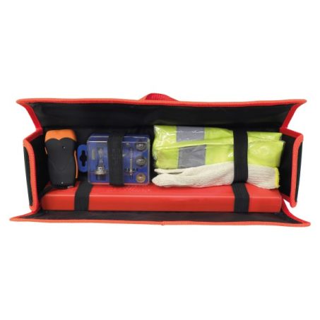 Carpoint propose le kit de dépannage ''luxe'' comprenant un gilet de sécurité à bandes réfléchissantes, un triangle de signalisation, des gants, une lampe de poche et un coffret d'ampoules avec des fusibles. Le tout est soigneusement rangé dans une sacoche de petite taille facile à caser à bord de son camping-car.