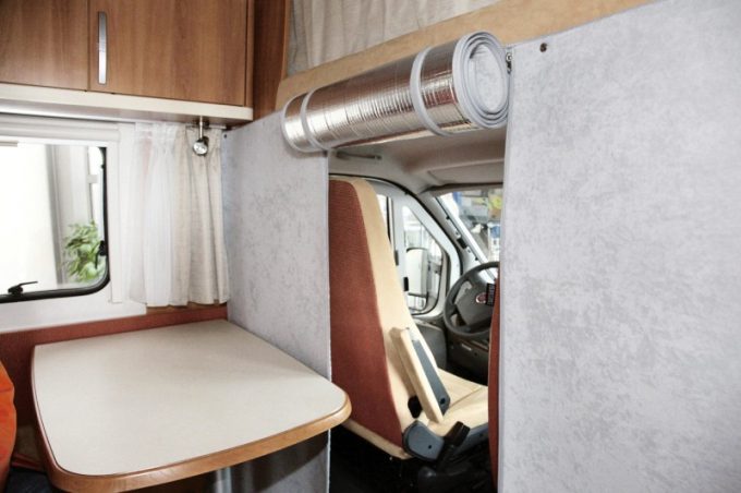 Conçu pour les modèles avec capucine, ce rideau de séparation (2,22 m de large et 1,48 m de haut) procurera une ambiance conviviale et intime dans la cellule grâce à sa structure composée de velours et de polyester. La face tournée vers la cabine est, elle, recouverte de trois couches (80 mm d'épaisseur) de matière isolante et réfléchissante. Une série de boutons pression et deux fermetures à glissière assurent la fixation au véhicule pour un usage facile et pratique.