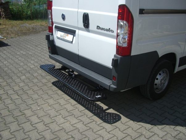 L’arrière des fourgons est souvent l’accès privilégié à un vaste volume de chargement. Les portes arrière sont aussi, parfois, une entrée complémentaire à l’espace de vie. Pour un accès optimal, ce nouveau marchepied Safety Step, importé par la société Lea-Pro, résout le problème de la hauteur du seuil du véhicule. L’accessoire est rétractable, ne dépasse que de quelques centimètres en position repliée et trouve même une déclinaison spécifique lorsque le fourgon dispose déjà d’un crochet d’attelage.
